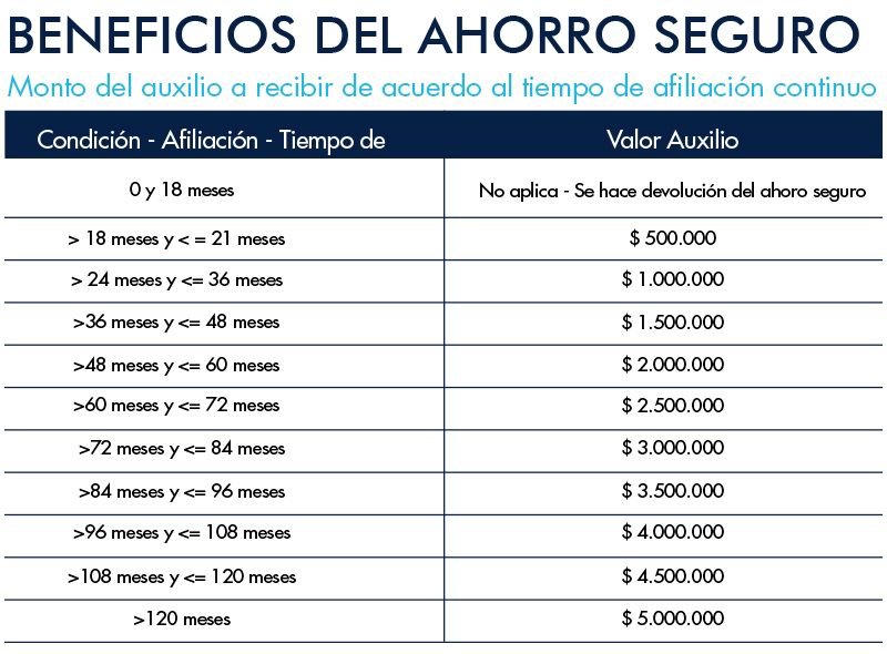 Por ser AHORRO, el asociado nunca pierde su derecho a reclamarlo ya sea en calidad de auxilio o por devolución del valor ahorrado, en el siguiente cuadro podrá apreciar las bondades de este auxilio, creado exclusivamente para tí.