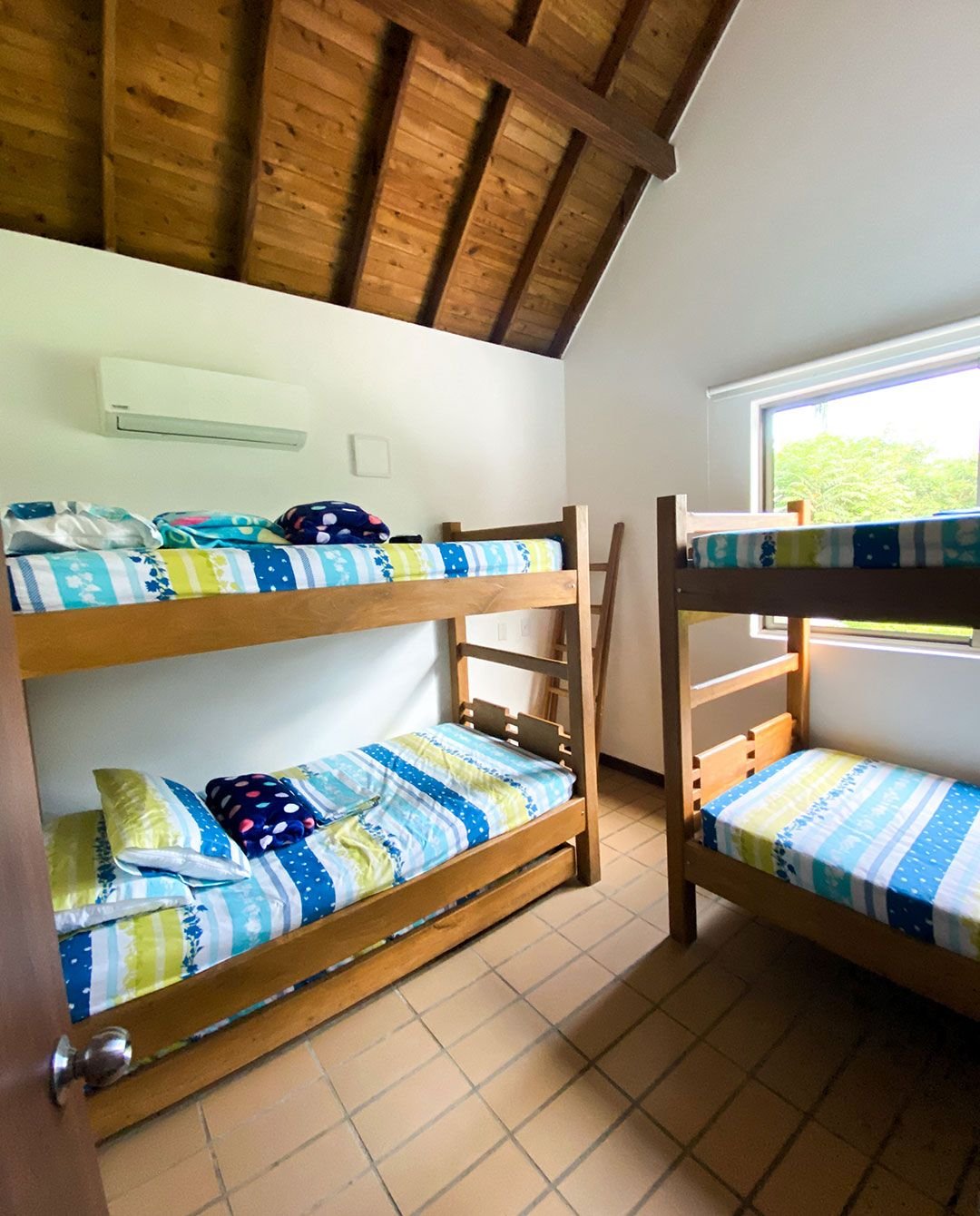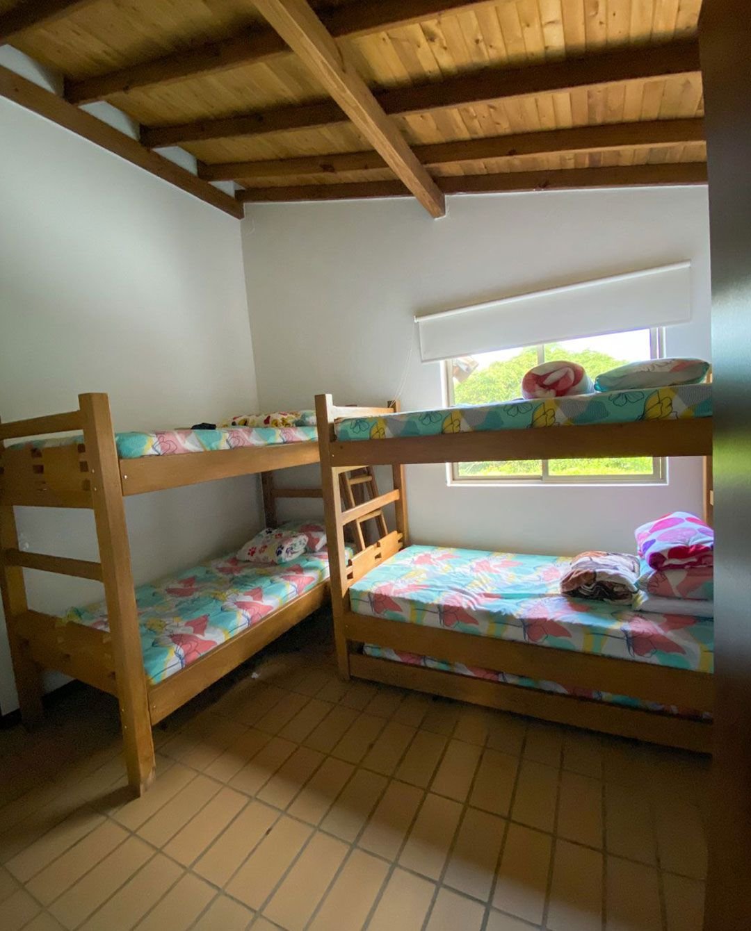 En la segunda planta contamos con 3 habitaciones, dos habitaciones con cómodos camarotes (4) y la habitación principal con baño y balcón privado.